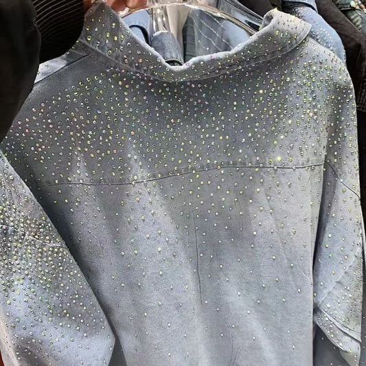 Real Photo New In Autumn Trend Hot Drilling Denim Shirts and Blouses Women's Loose Casual Denim Top Jacket Woman Clothes