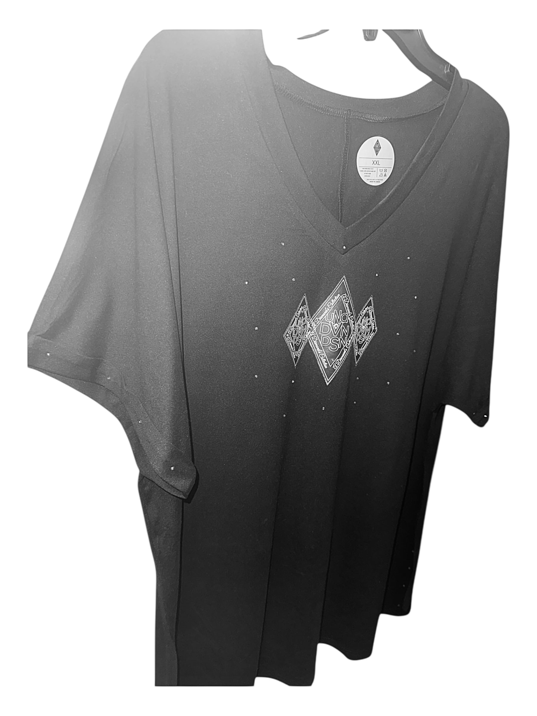 Comfy sparkle slightly oversized soft cotton tee side slits v neck