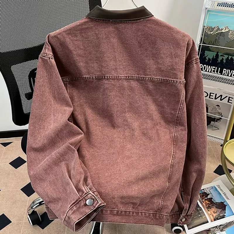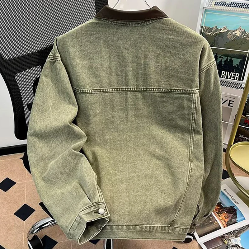 Men's Denim Jacket Color Block Turn Down Collar Retro Autumn Washed Design Denim jackets Men Loose Outerwear Cowboy Windbreaker