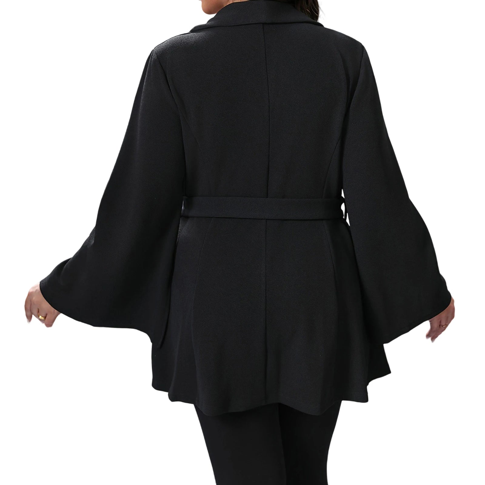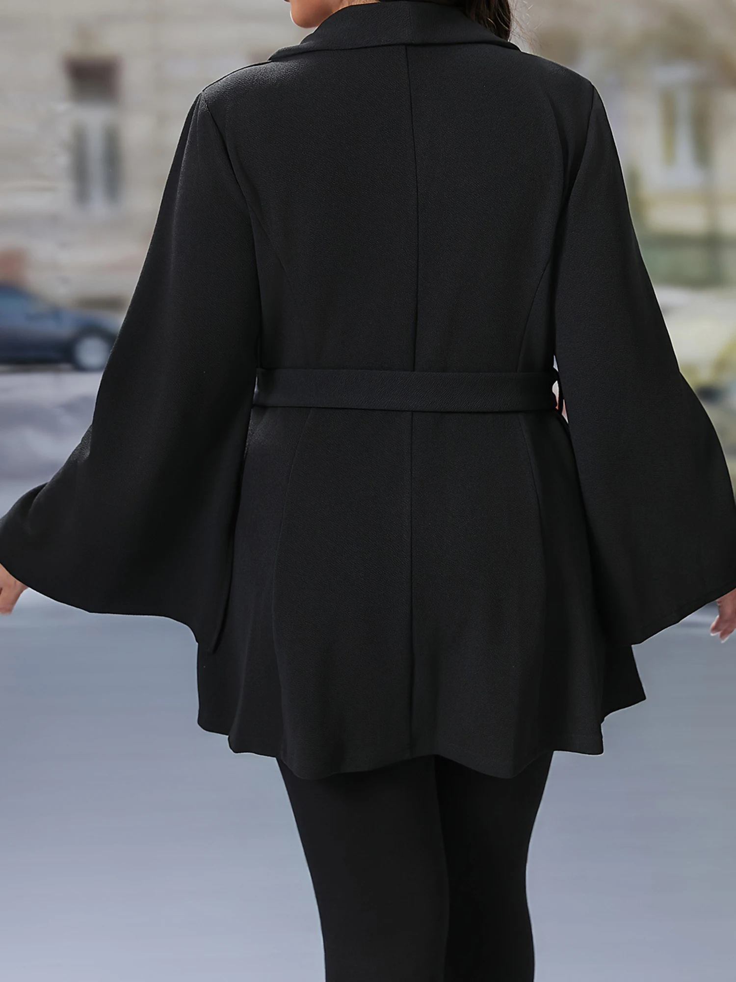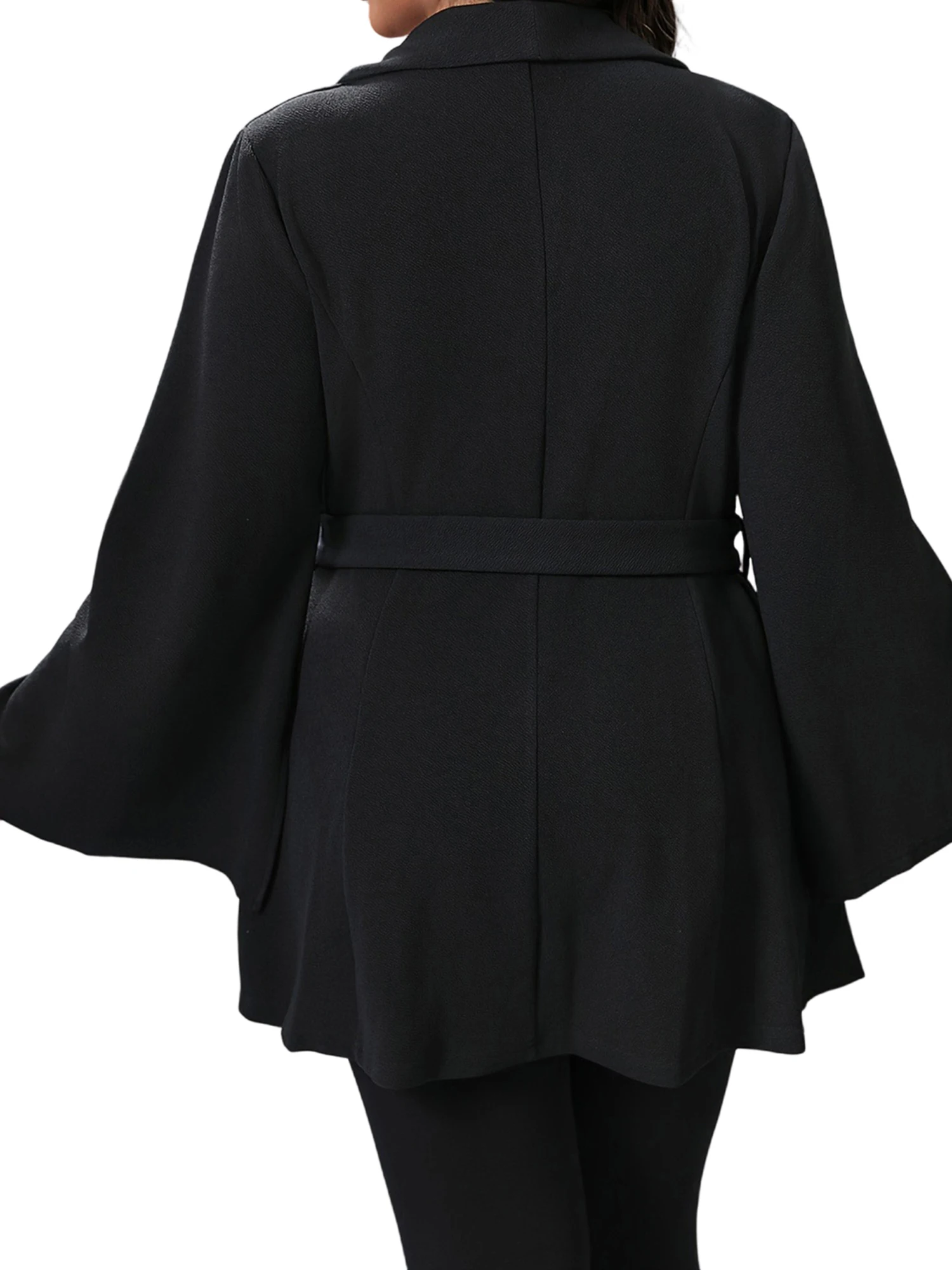 Women's Plus Size Blazer, Solid Color Long Flare Sleeve Lapel V-Neck One Button Coat Work Office Jacket Clothing